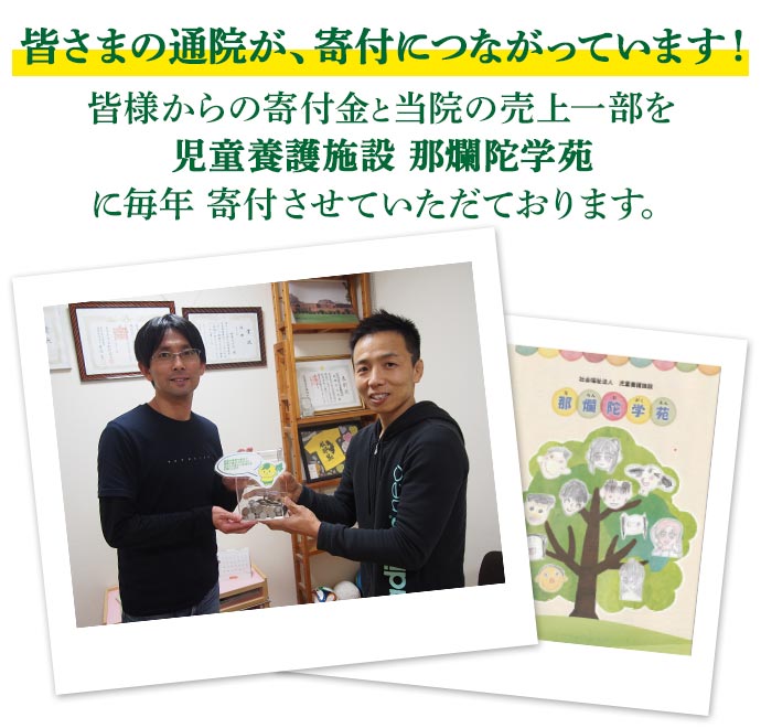 よもぎ整骨院に通っていただくことで、売上の一部が社会貢献団体へと寄付されています。