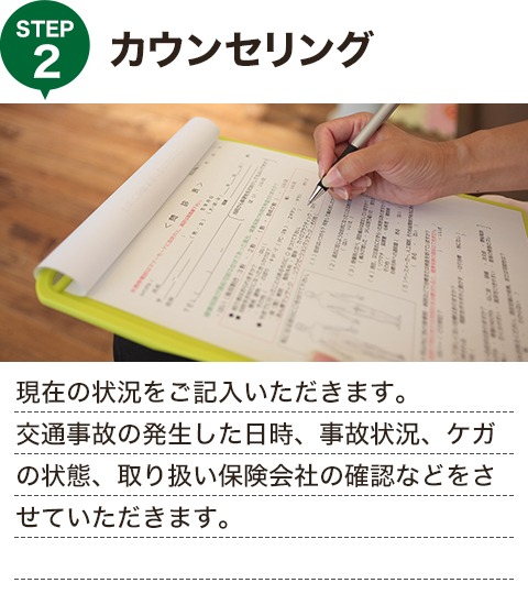 当店は不運にも交通事故に遭ってしまったあなたのお身体を根本から改善し、得られるべき補償を受け取って頂けるよう全力で対応いたします!!