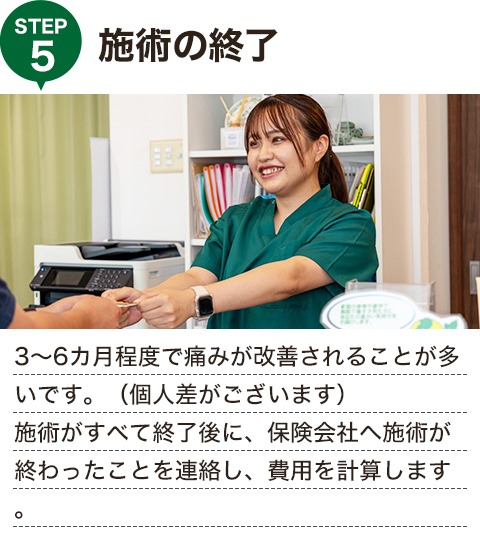 自賠責保険や任意保険から治療費が支払われるので、施術料は0円です。