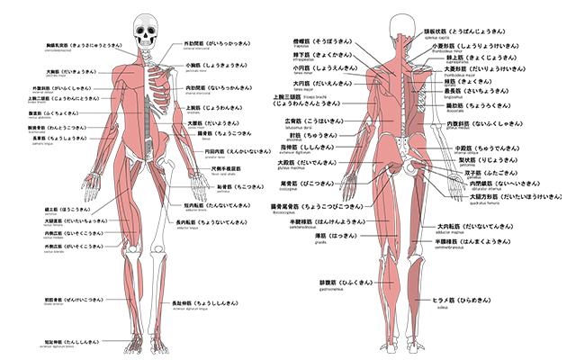 身体には土台となる背骨・骨盤のいわゆる骨格があり、骨と骨の間には関節があります。