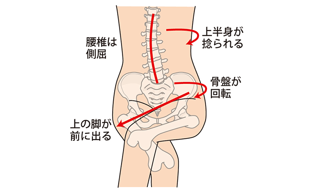 それにより股関節に伝わる衝撃を筋肉が吸収しきれなくなり関節に負担が掛かります。