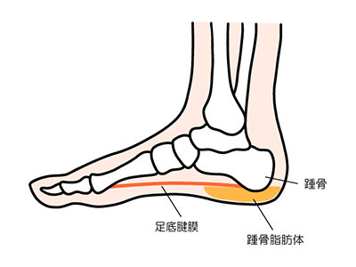 この組織は、歩くときの衝撃を和らげるクッションのような働きもしていて、足の骨を正しい位置に保つために、ゴムバンドのような役割もしています。
