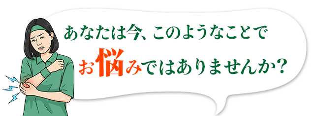 • 肩や手首への代償動作が増え、二次的な痛みが発生